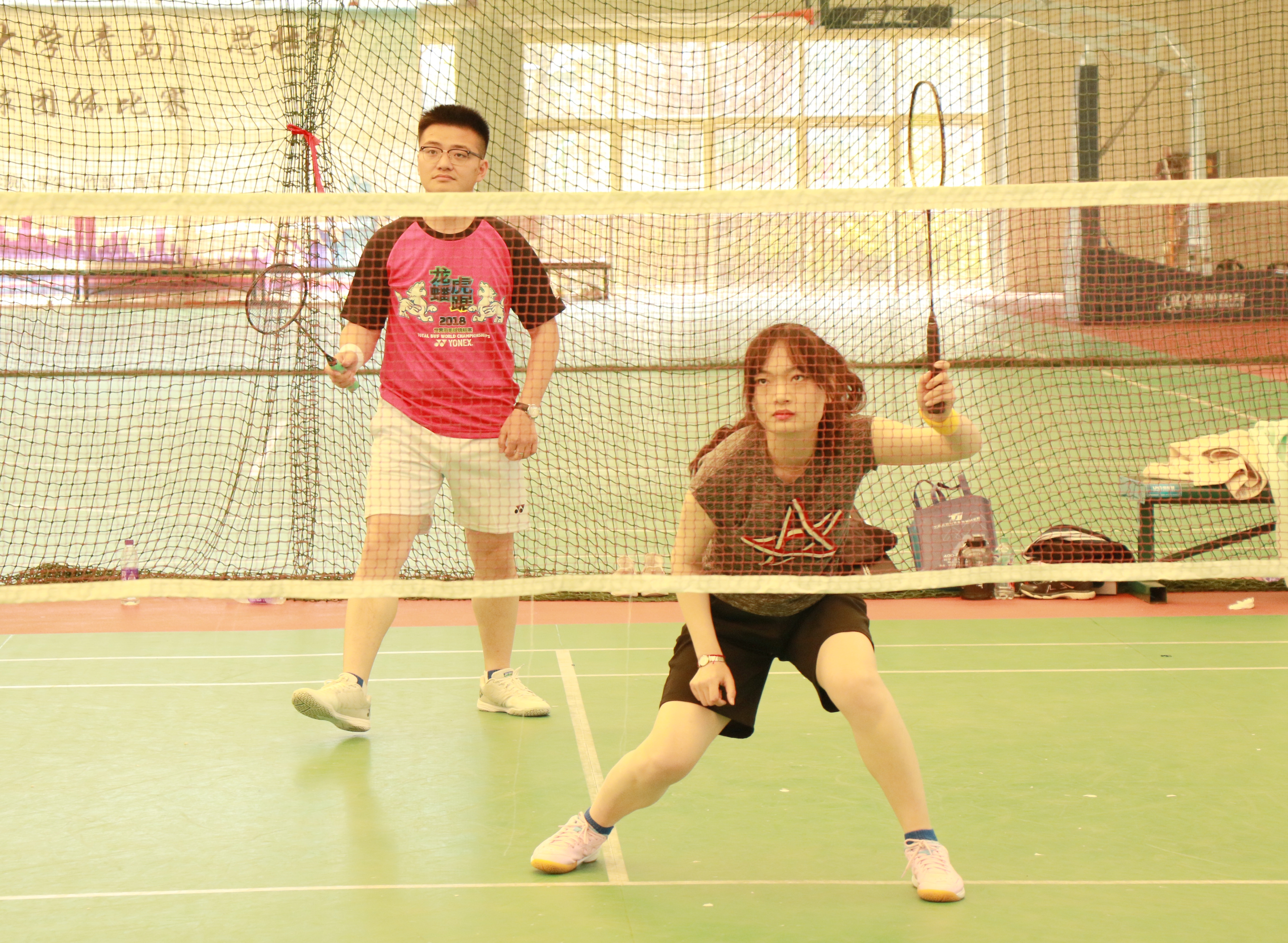 各位参赛选手入场后积极备战,利用赛前时间进行充分的热身活动,努力让自己进入最佳的状态。比赛中,扣杀、勾对角、吊球、劈杀等精彩场面不断呈现。单打比赛中,选手们斗志昂扬,用心总结经验,扬长避短,将进攻和防守表现得淋漓尽致;双打比赛中,选手们相互协作,前后配合,展现了团结互助的精神风貌。场边的观众连连为好球喝彩,为选手们加油助威!