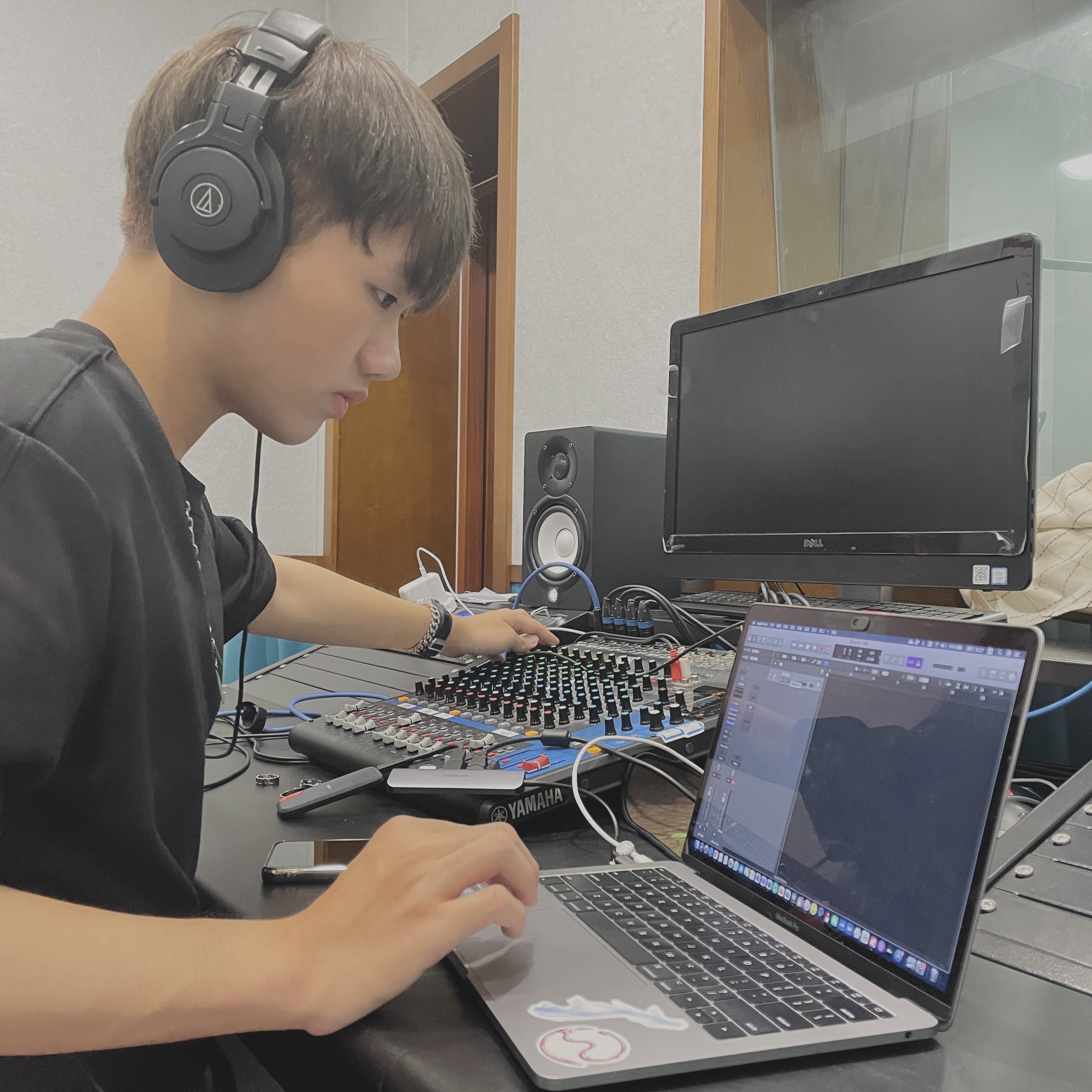 在同一时间线上,初三的时候我得到了人生中第一套的录音设备,正式开始了我的音乐制作生涯。从小以来对于音乐和歌唱的热爱,促使我萌生了自己当制作人的想法。我并没有受过系统专业的音乐制作的教育,这些知识都是我通过在YouTube上看各种教程自学的。从最基础的录音设备的使用方式和录音界面的操作,到混音技巧、人声混音、乐器混音、母带制作等等,都是我在课余和排练结束之后自行学习的。音乐制作肯定少不了要自己唱歌,而我的唱歌技巧也是在这一段期间内自学形成的。自然而然地,我也开始参加各种的歌唱比赛。在高考之前,我参加了中学生涯中最后一次的大型歌唱比赛——SingingFighter2019。在比赛中我结识了很多来自我交友圈以外的、志同道合的朋友们。在我们的共同合作下,最终获得了团体赛冠军,而我的中学生涯也到此完美落幕。