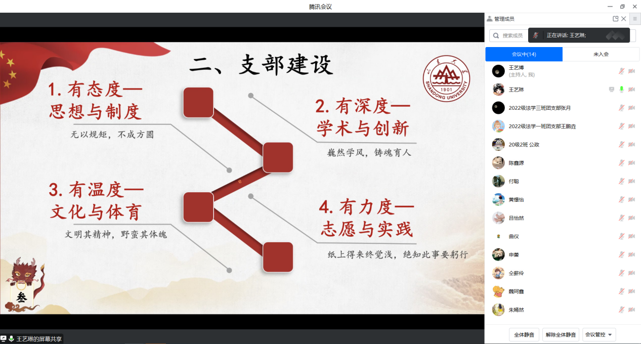 为切实加强基层团支部的组织建设,全面活跃基层团支部工作,3月11日,taptap点点体育团支部达标升级答辩会在线上举行。taptap点点体育团委书记曲仪,研究生辅导员吕怡然,本科生辅导员付聪、黄憬怡担任评委。