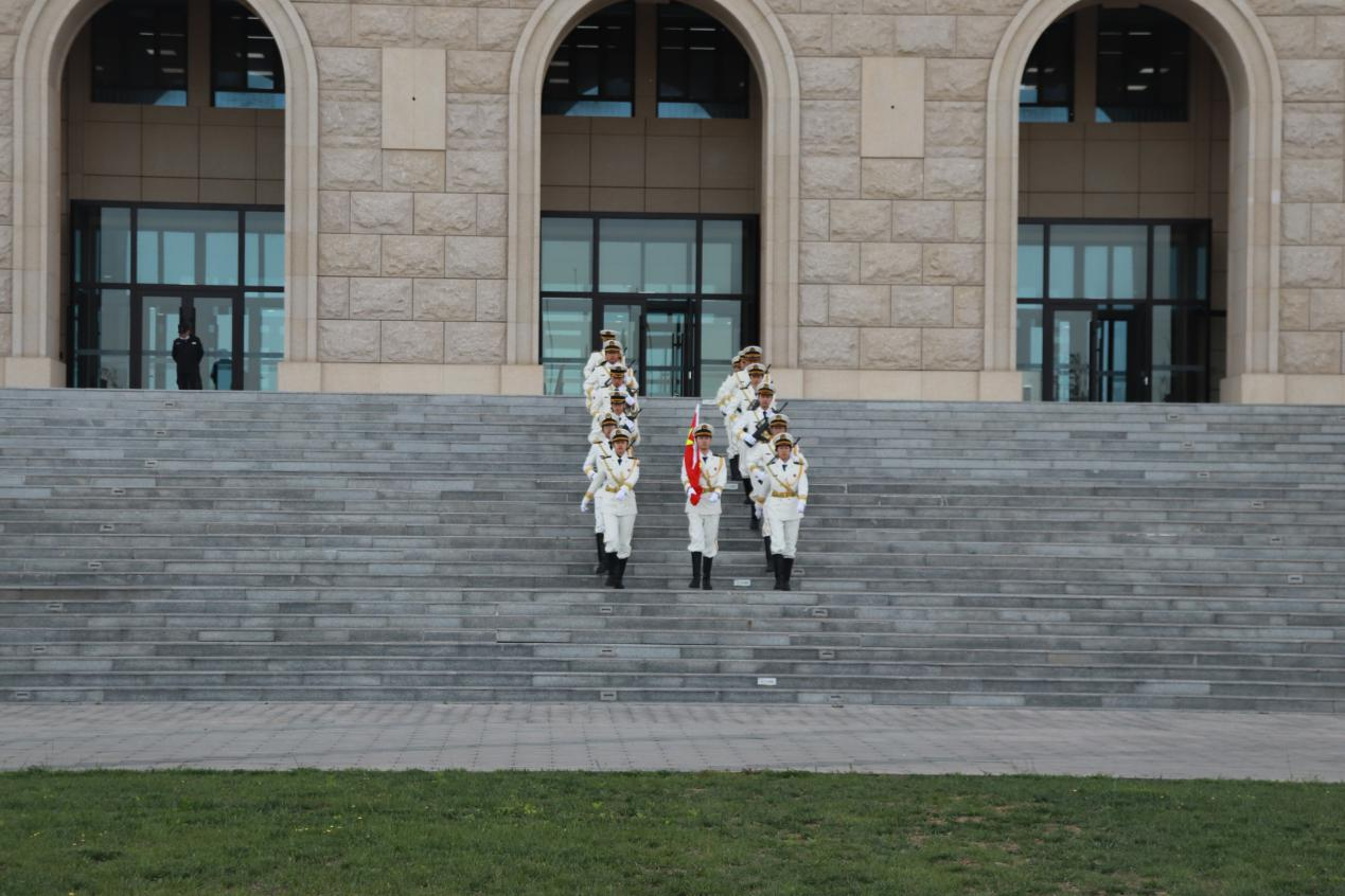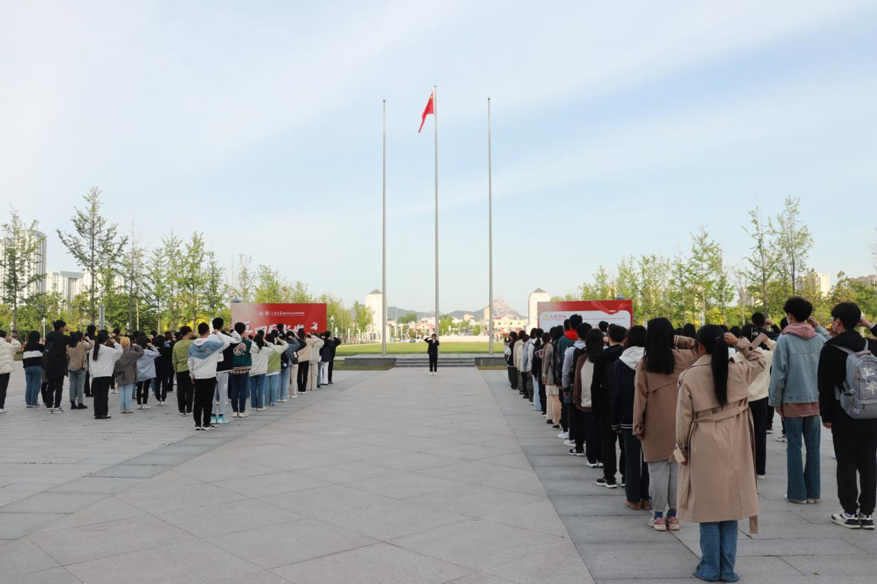 清晨,微风送爽,春意盎然。早晨7时,迎着初升的朝阳,国旗护卫队迈着铿锵的步伐护送鲜艳的五星红旗进入现场。随着《义勇军进行曲》的奏响,五星红旗在同学们的注视下徐徐升起,承载着青年一代对未来的理想与希望。