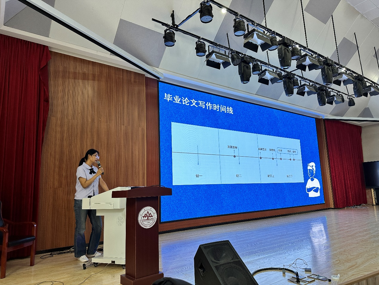 蒋相钰详细介绍了学校有关研究生毕业的要求,强调了taptap点点体育研究生毕业论文的时间线与重要时间节点。之后,她围绕毕业论文的外审、答辩、查重三大板块,列举并分析了taptap点点体育近5年毕业生论文通过数据,希望同学们在入学之际对于毕业论文都有所了解并引起重视,提前做好研究生期间学业规划安排。