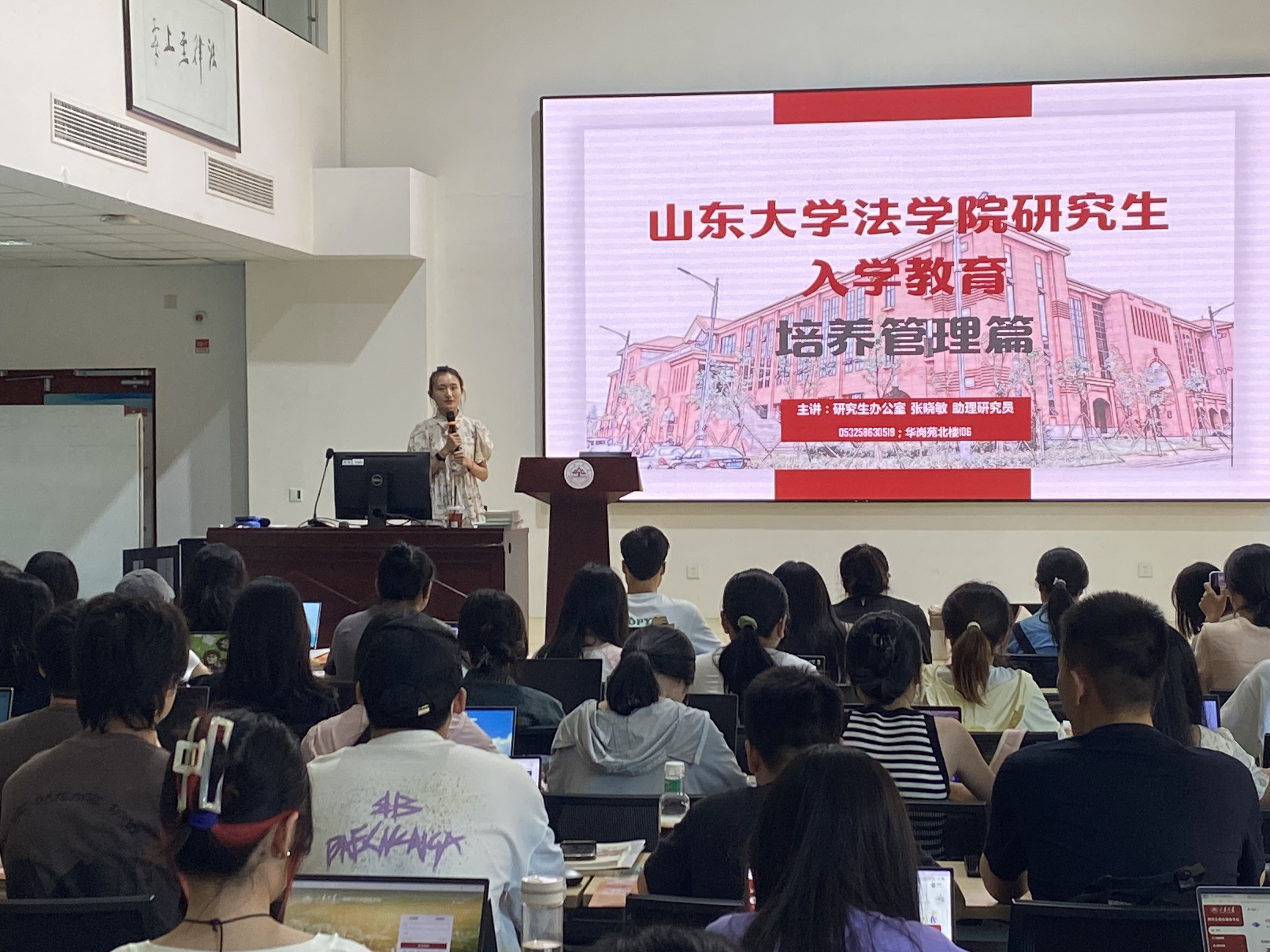 张晓敏分别为学术硕博、法律(非法学)和法律(法学)研究生组织三场培养管理教育专题活动。她以串联的方式领学了《研究生手册》的重要章节内容,通过三个常用网站提示解决日常学业问题思路,并带大家详细学习各专业培养方案、指导同学们在新系统制定培养计划和选课。寄言同学们一身温暖正气,不舍法与正义,希望大家能够未来学年内“抱定宗旨、砥砺德行、敬师爱友”,顺利毕业。