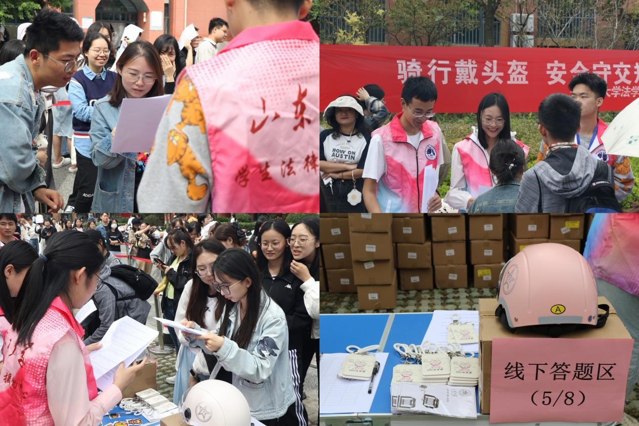 活动吸引了大量师生参与,现场气氛热烈有序,以悬挂横幅、张贴海报、发放普法宣传单等形式对《山东省电动自行车管理办法》及其他各类交通法规进行宣传介绍,并设置普法摊位,解答法律问题。活动过程中专业性与趣味性相结合,设置集赞、知识问答、“骑行安全大转盘”等游戏环节,发放反光车贴等交通安全宣传纪念品。参与活动的师生在答题闯关中积累了非机动车驾驶与管理规范相关知识,增强了遵守交通法规的意识。