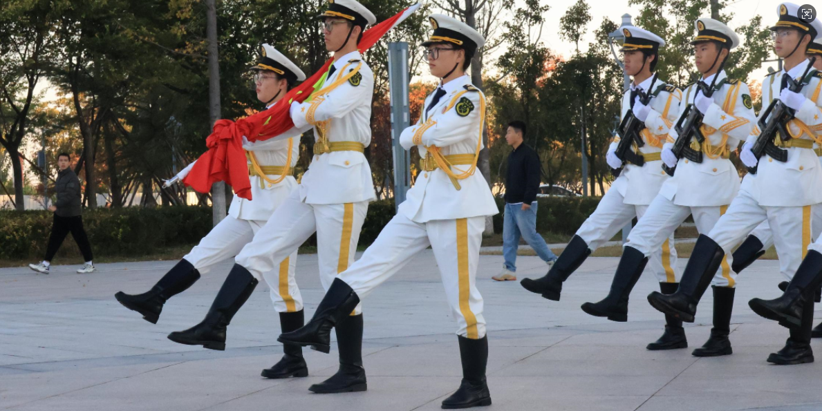 早上七点整,升旗仪式正式开始。国旗班的同学昂首阔步,迈着铿锵的步伐护卫鲜艳的五星红旗入场。全体师生齐唱《义勇军进行曲》,鲜艳的五星红旗冉冉升起,承载着青年一代对未来的理想与希望。