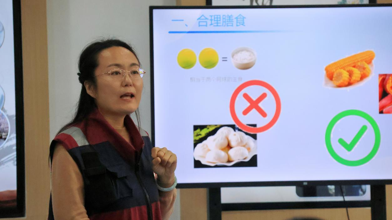 首先,卢文琼为社区居民们讲解了健康生活方式的理念和重要意义,点明了健康的四大基石:合理膳食、适量运动、戒烟限酒、心理平衡,引导居民培养健康的生活习惯。
