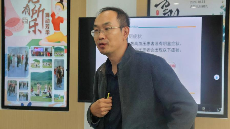 最后,鲁海涛为居民们带来了关于“高血压”的知识讲座,鲁院长从高血压的前兆、并发症入手,引导居民自主回答并发现这类常见疾病在防治中的误区。他将复杂的理论具体化,生活化,使居民们充分理解了有关的预防途径和应对策略。