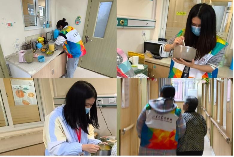 暖心慰老、温情共融。节目表演结束后,志愿者同工作人员为老人们准备晚餐。同学们积极倾听老人心声、关切老人健康,以通俗易懂的方式向老人们宣传普及生活中的法律知识,让温暖与法律同行。