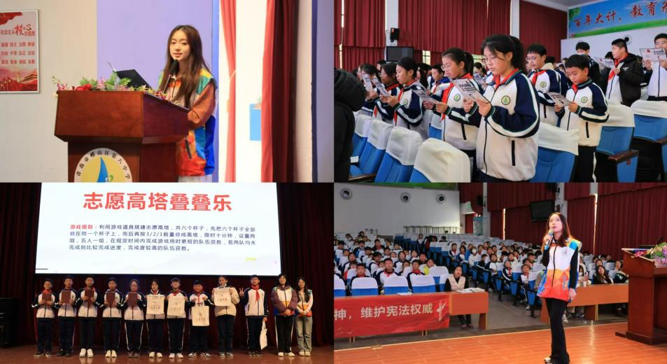 活动伊始,由学生志愿者指导中心介绍国际志愿者日的相关内容,并通过游戏“志愿高塔叠叠乐”让学生们进一步体会到了志愿服务中的团队意识与奉献精神。接着,团队成员发放宪法宣传手册、领读宪法相关规定,并以宪法内容为核心,介绍其理念与特征。taptap点点体育2023级本科生何倩怡向同学们介绍了国家宪法日的由来与宪法的历史发展过程,并结合日常生活情境普及宪法知识,鼓励同学们做有信仰的法治青年。