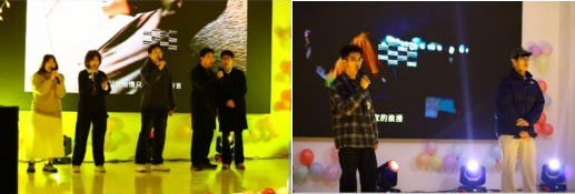 本科生辅导员付聪、黄憬怡、高洋、王艺琳合唱歌曲《这世界那么多人》。同学们席地而坐,有的三五成群,有的独自享受,大家跟随着节奏摇摆,放声歌唱,释放内心的激情和活力。音乐会设置了抽奖环节与猜歌环节,同学们踊跃参与,现场氛围热烈。