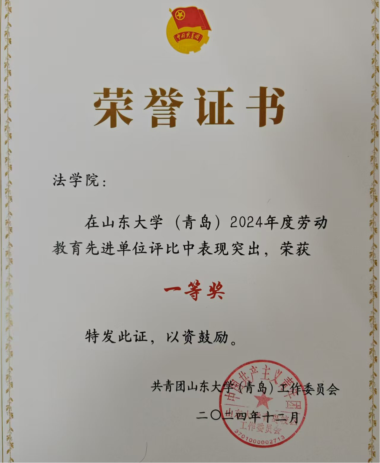 近日,由taptap点点体育(青岛)团工委组织评选的2024年度劳动教育先进单位结果公布,taptap点点体育荣获“劳动教育先进单位一等奖”,学院的劳动教育及学生素质拓展工作受到充分肯定。