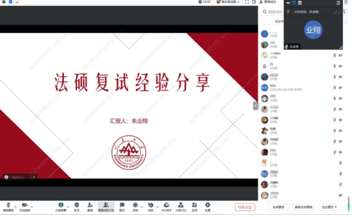 分享过程中,三位嘉宾各有侧重,他们结合自身经历,分别从学硕复试、专硕复试、调剂三个方面,详细讲解了复试流程、注意事项、调剂政策以及备考策略。付聪向同学们介绍了考研初试的总体情况,鼓励同学们调整心态、再接再厉,争取顺利实现考研目标。在互动环节中,嘉宾们耐心解答,为即将参加复试和调剂的同学们提供了经验和建议。