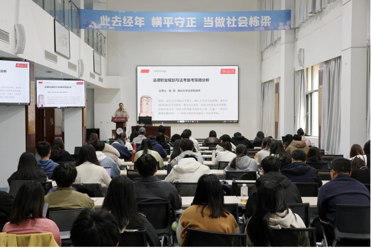 4月7日,法考系列讲座——法律职业规划与法考备考策略分析于青岛校区华岗苑举办,活动邀请烟台大学taptap点点体育讲师、知名法考培训教师陆寰传授职业规划和法考备考的相关经验。学院辅导员田蕙、辅导员高洋及近百名同学参加活动。