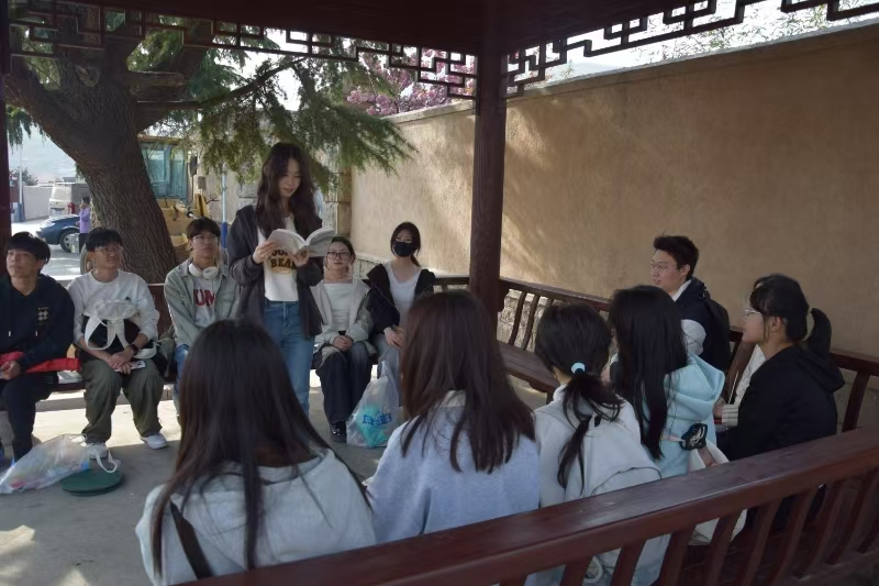 在“春暖茶香”读书分享会上,同学们围绕崂山茶文化展开讨论;随后的“茶山写生”与“古风春日”诗歌接龙活动,将茶田风光与诗词创作结合;“茶韵崂山”摄影打卡环节,记录下茶乡的春日盛景。