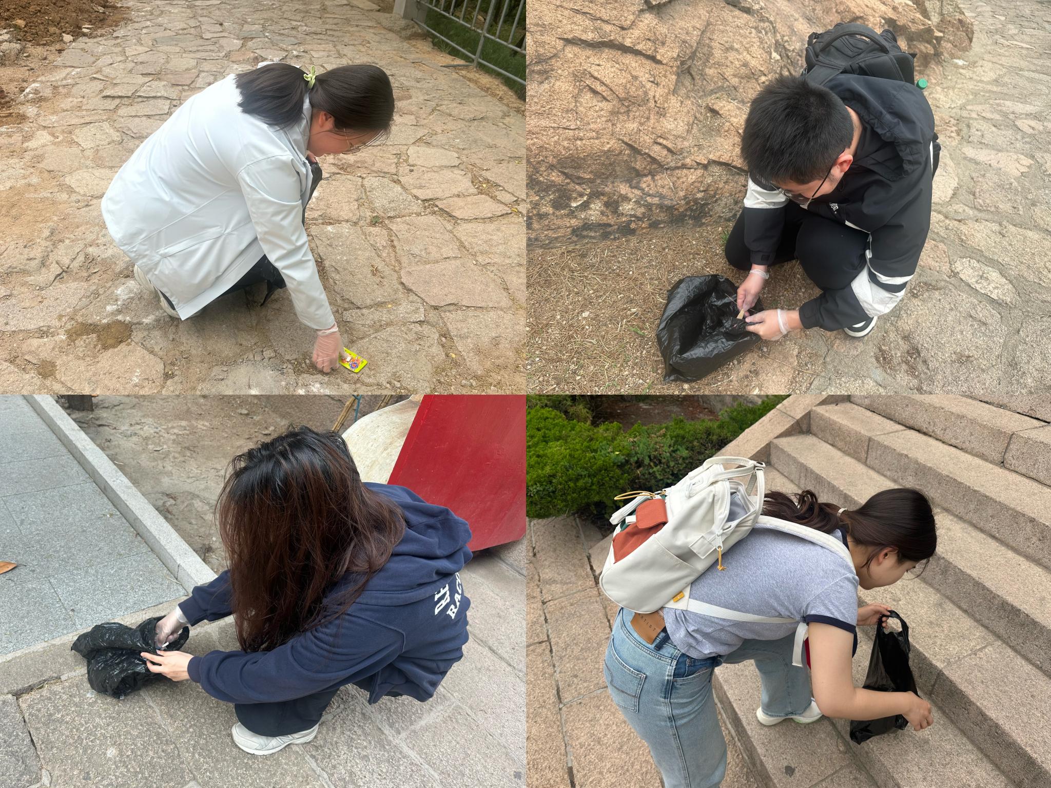 在登山过程中,同学们配备一次性手套、塑料袋等垃圾捡拾工具,沿途清理散落垃圾,将劳动教育融入实际行动,为环境清洁贡献自身力量,有力展现新时代青年的责任担当。