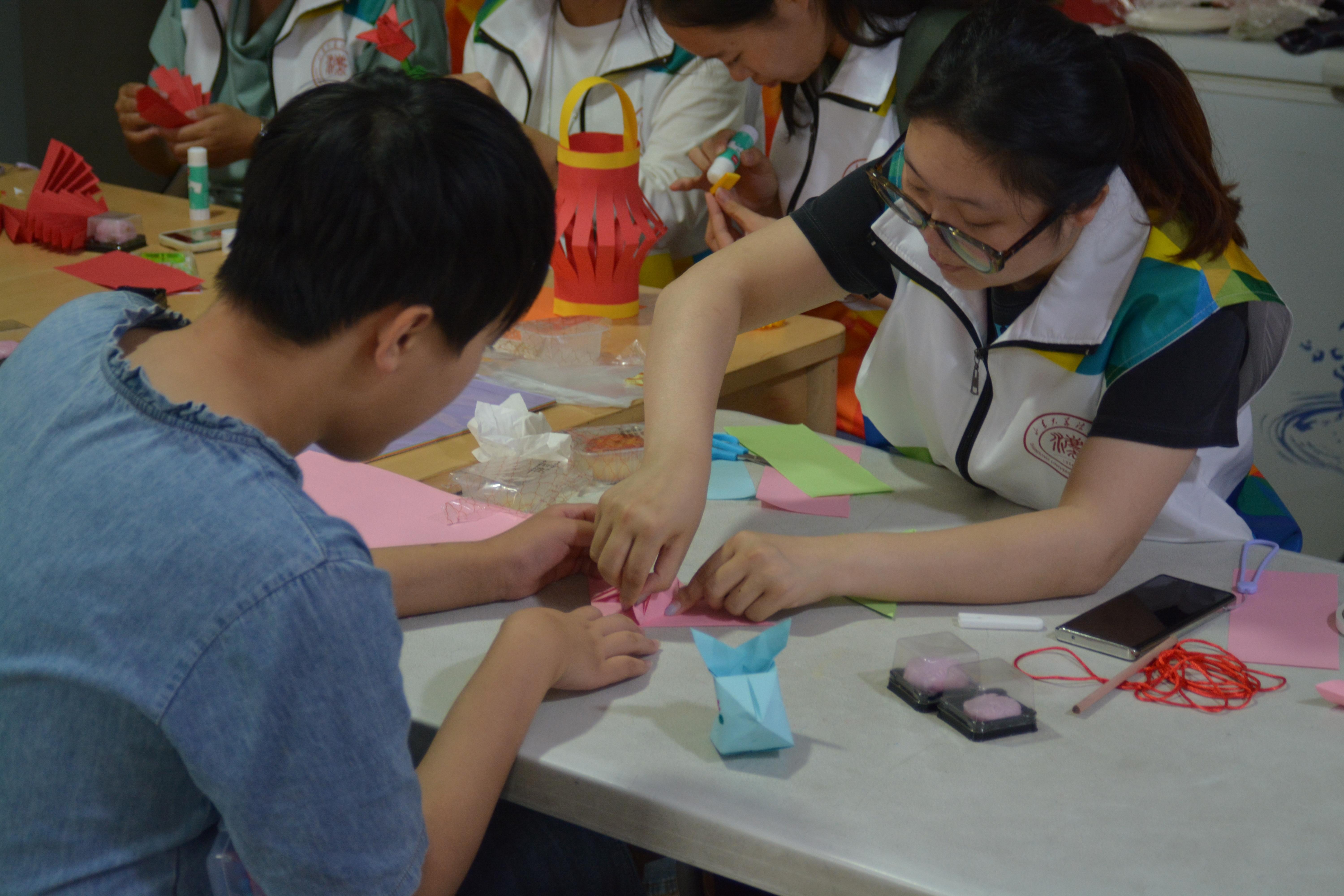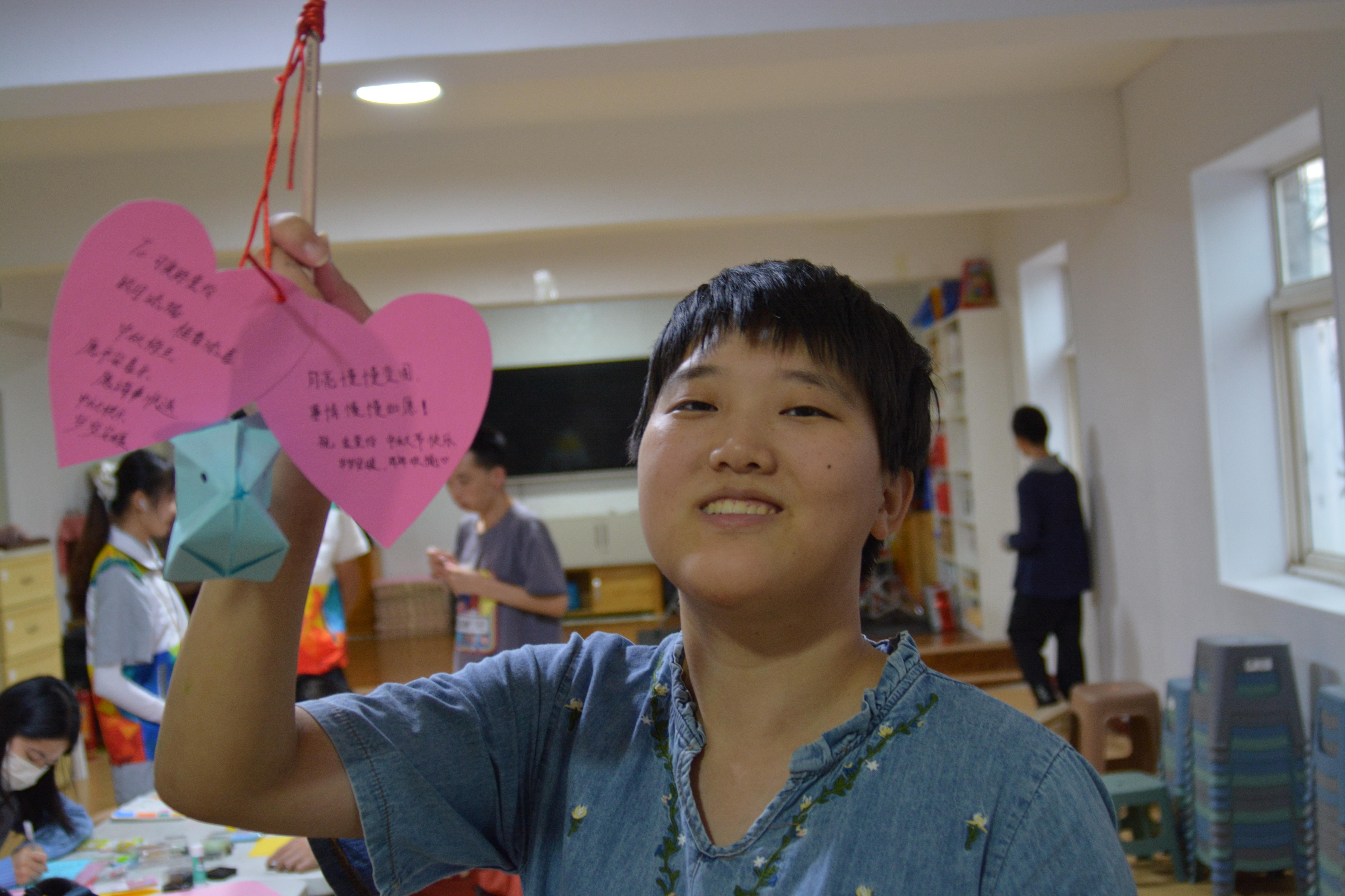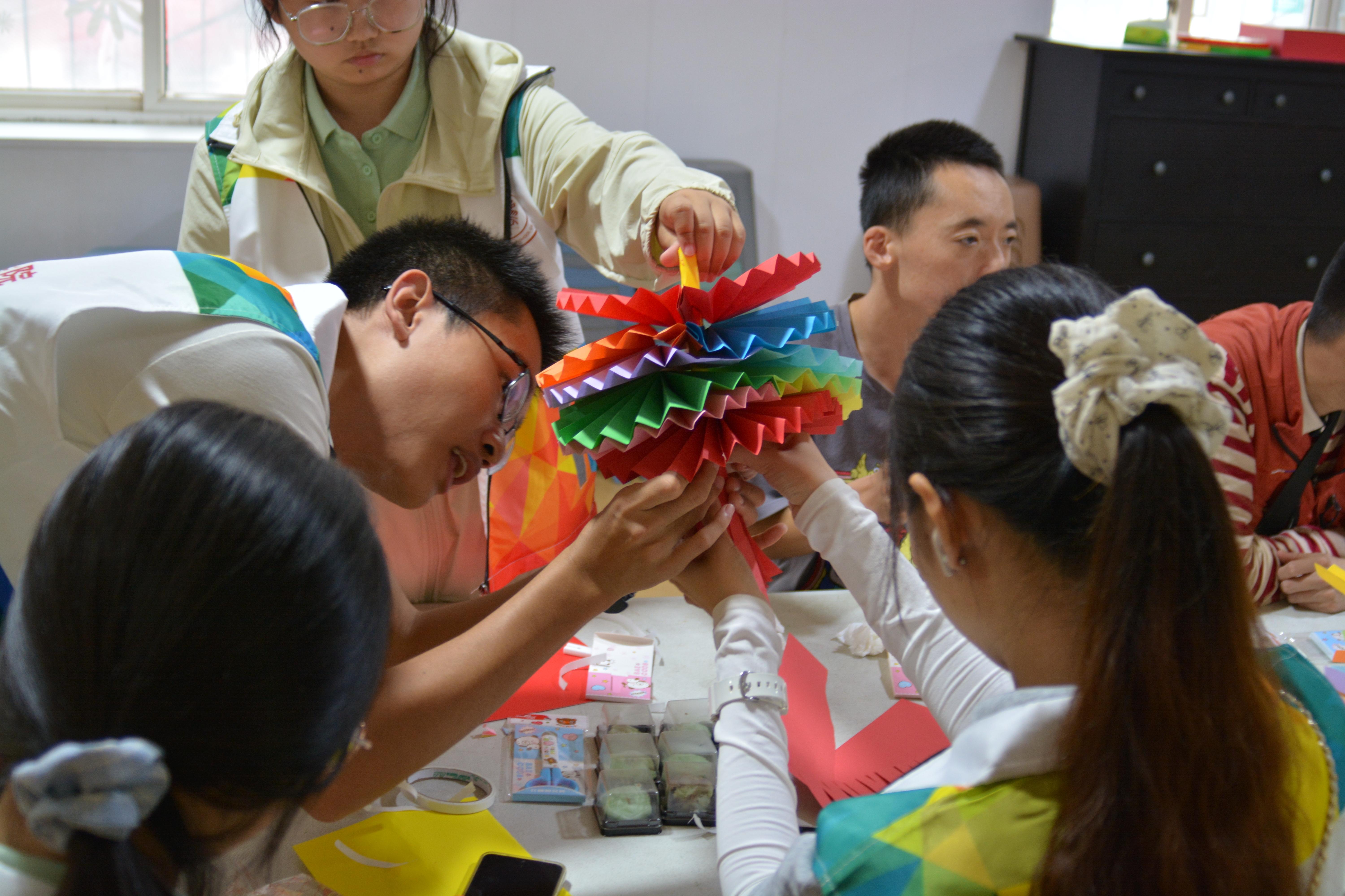灯笼制作环节中,志愿者与孩子们共同折叠、剪裁、装饰,协作完成了一盏盏五彩缤纷的彩灯。看到成品时,孩子们纷纷露出灿烂的笑容。