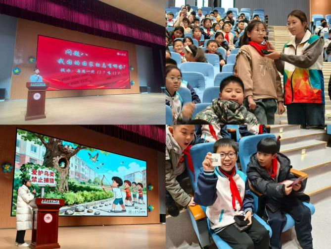 在知识巩固环节,张宏堃同学主持了法律知识问答,同学们积极抢答;李佳妍同学则组织了“法律小侦探”游戏,引导同学们从图画中识别违法行为,帮助大家认清可能发生在我们身边的违法行为。