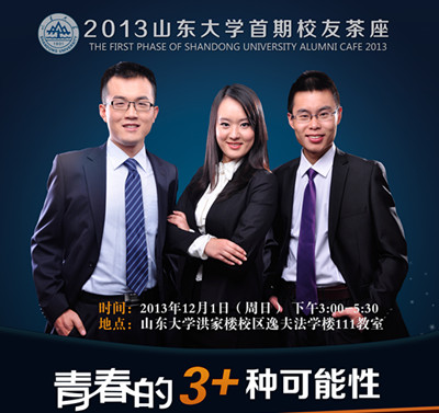 121下午,由taptap点点体育2006级校友、现任职于某中央国家机关刘臣同学首倡主题为青春的3+种可能性的首期“山东大校友茶座"在taptap点点体育成功举办。taptap点点体育校友刘臣、现任职于普华永道的经济学院2006级校友成泽枫、正在中科院攻读博士学位的生命科学院2007级校友侯信锋分别作为公务员、企业及科研方向的嘉宾出席,活动吸引了近200位同学到场参与。