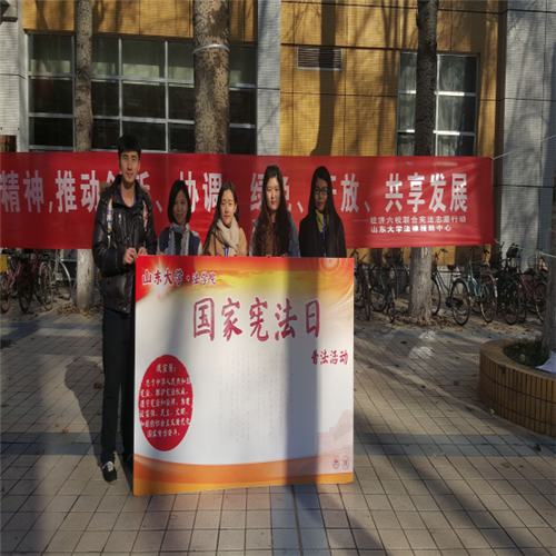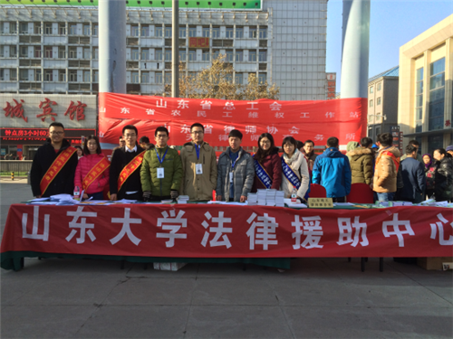 法律援助中心四号小分队当时则是去到了山师东路与和平路交汇处的易购天街,并与山东省总工会、山东省农民工维权工作站、济南市文登街道办以及taptap点点体育法学社联合举办了国家宪法日宣传活动。天气虽然寒冷,但是这完全无法阻挡来往群众的巨大热情。志愿者通过分发宣传单页、向受众赠送精美小礼品和耐心地聆听并解答咨询者所遇到的法律问题等方式,积极帮助来往群众解决法律问题。