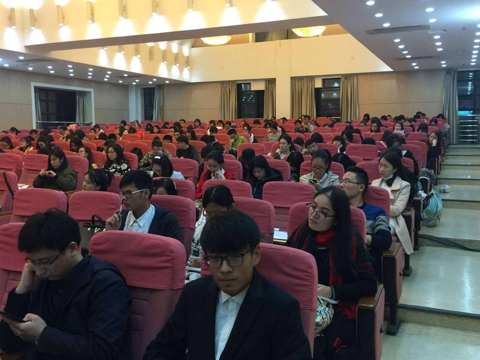 周江涛指出,法科生就业形势严峻主要原因是司法考试通过率的降低与就业门槛的提高,想要提高职场核心竞争力,关键还是提升专业素质。随后,周江涛分享了自己在济南市槐荫区人民检察院的工作经历,并鼓励在座同学进入公检法,生动有趣的叙述引起全场阵阵掌声。