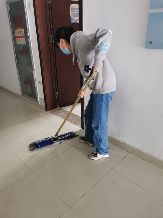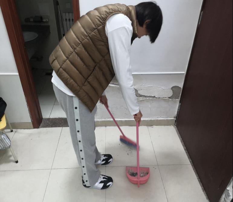 又如B545男生宿舍的张相国同学积极帮助同学,为脚受伤的张浩宇同学打扫屋子。