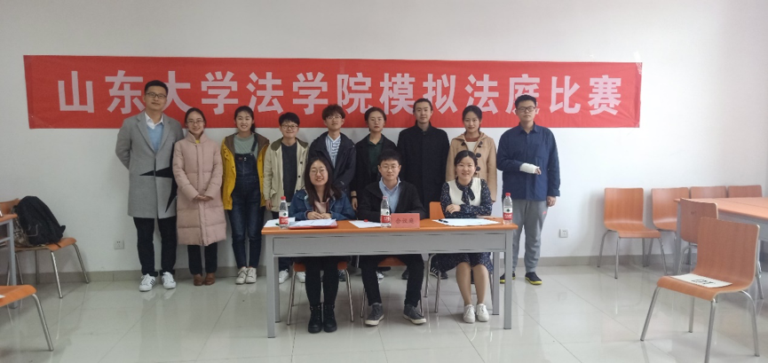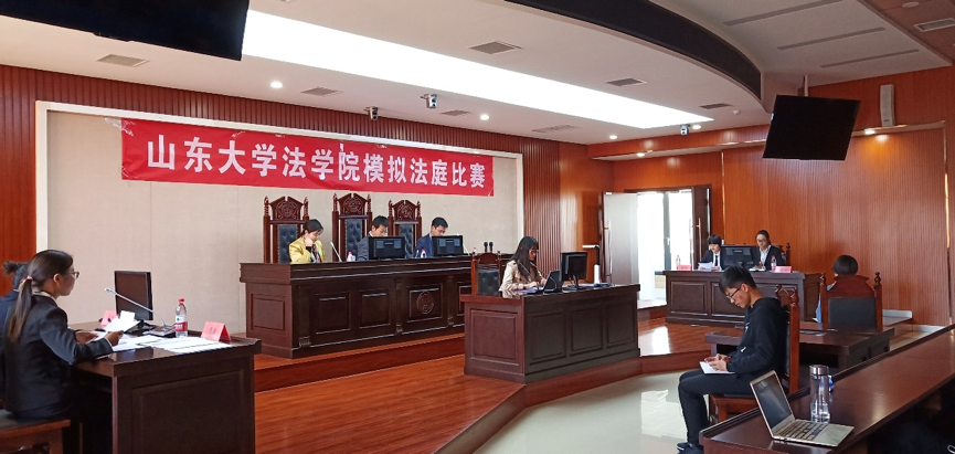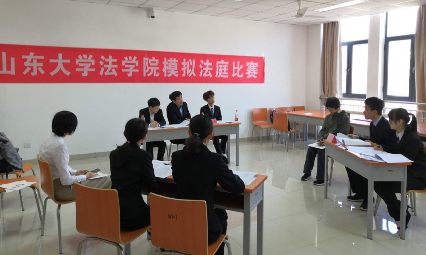 4月14日早晨,复赛如期进行。复赛由初赛胜出的4支优秀队伍进行两两角逐,最终遴选出2支队伍进军决赛。本次复赛的审判长分别由山东康丰律师事务所的蓝孝峰律师与郭兴涛律师担任,两位律师积极参与庭辩过程,并在比赛结束时对参赛同学的庭辩内容与技巧提出了中肯建议。