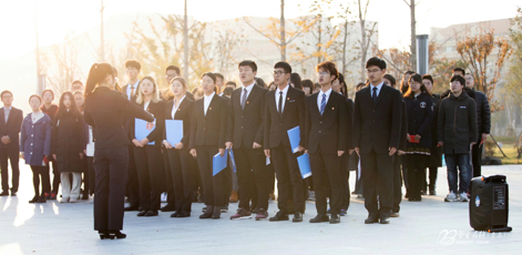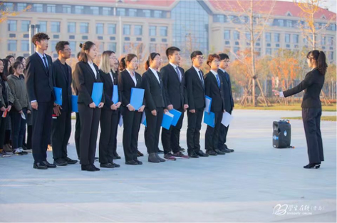 2018年11月12日的早晨,初冬的风吹在脸上,让人为之精神一振,却感觉不到寒意。旭日从厚厚的云层中抬起头来,光辉洒在刚刚醒来的校园里,驱走了一夜的困倦。往常安静的图书馆前,却传来了铿锵有力的脚步声。在图书馆门前,一群人早已聚集在这里,昂首挺胸,昭示着青春的朝气。
