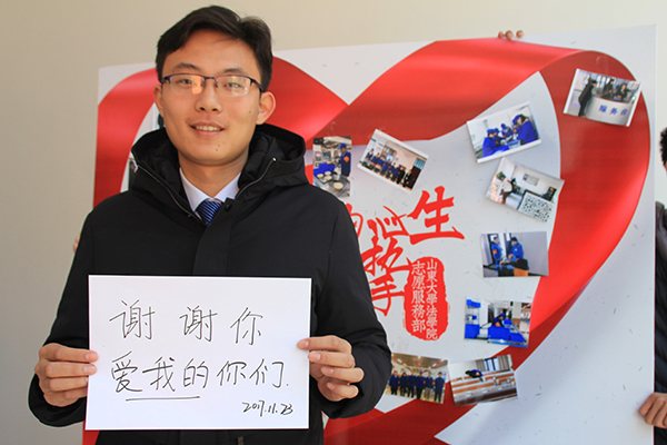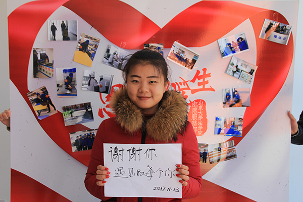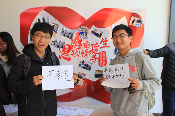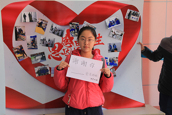 万爱千恩百苦,疼我孰知父母。11月第四周,志愿服务部开展感恩父母活动。在11月23日感恩节当天12:30-13:30于青岛校区曦园餐厅西门设置“感由心生,恩因情挚”展板,张贴前两次活动照片进行宣传,请同学们在纸上写下最想感谢的人或物并拍照留念。最后由志愿服务部整理照片并发给每位同学。同学们热情高涨,一致认为这是表达感情的好方式,纷纷来到现场积极参与活动。