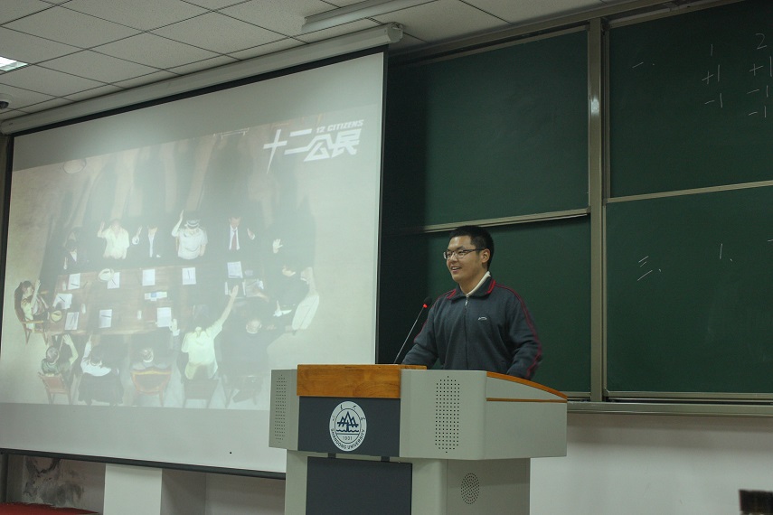 短暂的游戏过后,在众多社员期待的目光中,法艺博览活动正式开始。这次电影《十二公民》是根据美国影片《十二怒汉》改编,讲述的是一个由富二代“杀人案”引发的较为激烈的法庭智斗故事。影片观看过程中,同学们沉浸在紧凑跌宕的剧情中,不时被其中片段逗笑,也会为剧中人物不幸遭遇感到难过惋惜。社员们也在观看中得到启发,就其中的法律现象及反映的社会问题进行深入交流。观后,大家开展了现场影评讨论。社员们情绪高涨,纷纷走上台前,对电影的核心内容、伦理道德、摄影构图以及其背后所反映的法律知识等进行了较为详细的讨论和赏析。社员们们一致表示,该剧剧情引人入胜,且能引起广泛共鸣,让人不由地反思片中的社会现象,激发了大家学习法律的兴趣。副社长李学成作为最后的发言人,向大家介绍了由影片引出的“疑罪从无”原则和陪审制度,引发了社员的深思。会后社员们又在线上发表了观影感受,表明自己的态度和看法。