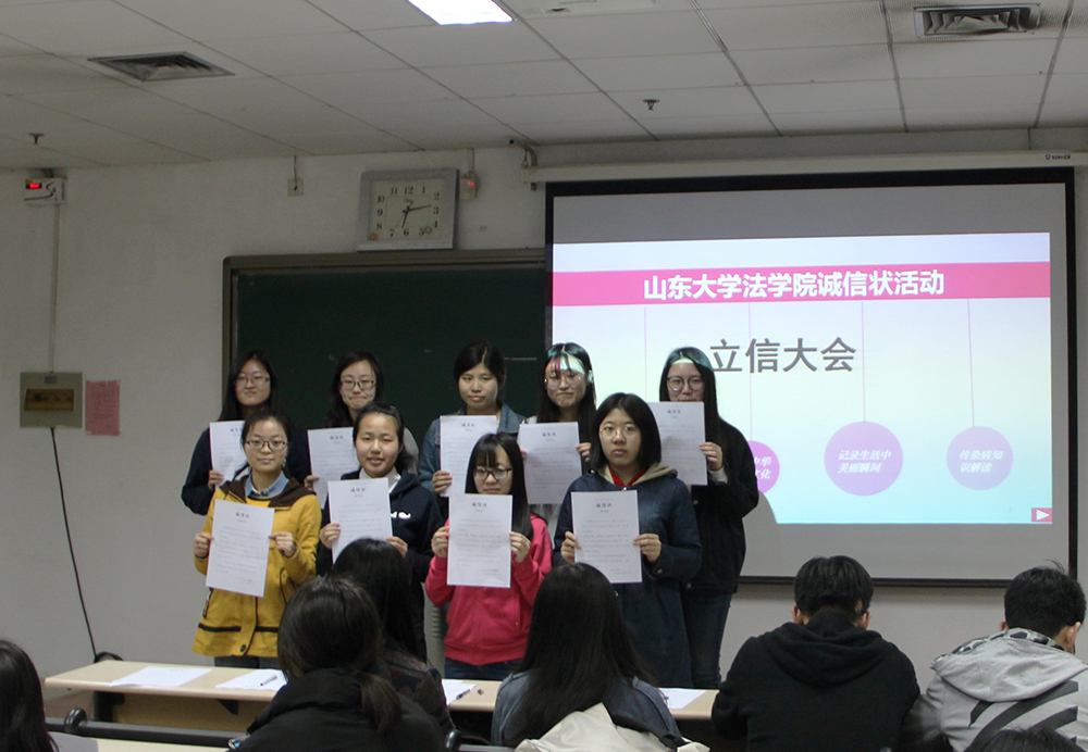 4月5日晚6时,立信大会于洪家楼校区法新楼116教室正式开始,本次大会由王凤瑞同学主持并宣布各项活动的开展。本次“诚信状”活动分为四个不同的项目,分别是“晨跑+体操”,“每天一首古诗词”,“摄影+征文”以及“传染病讲堂”。本次活动获得了同学们的积极支持和踊跃参与,报名者纷纷在诚信状上签名,并对完成各个项目充满信心。各活动的负责人与监督员也纷纷在诚信状上签名,保证活动公平公正公开进行。签名后,同学们合影留念,各小组就活动项目展开交流讨论,现场气氛十分活跃。