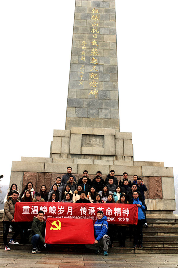 不牢记历史的民族不会拥有未来,不反思失败的民族不会走向富强。12月13日,在第三个南京大屠杀死难者国家公祭日这一天,taptap点点体育2016级法律硕士(非法学)36名党员在院党委副书记齐向东的带领下来到徂徕山抗日根据地旧址,探访当年抗日起义遗址,瞻仰英雄纪念碑,寻访回顾那段历史。