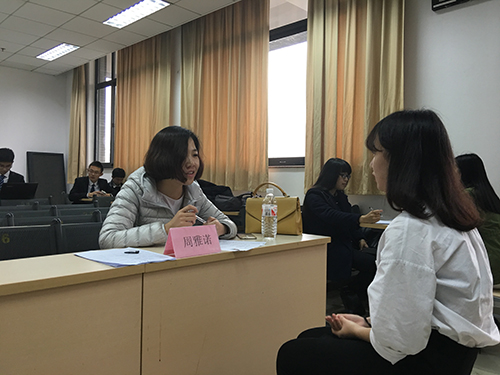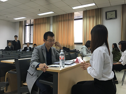 11月19日下午,由taptap点点体育团委、taptap点点体育学生会主办的“taptap点点体育 2016 年职业技能提升季初赛于法新楼402教室举行。本次比赛邀请了 taptap点点体育于永宁老师, 南京禧德文化传播有限公司无锡分公司、济南分公司资深HR丁娜娜,济南精英教育校区人力部负责人周雅诺担任面试官。