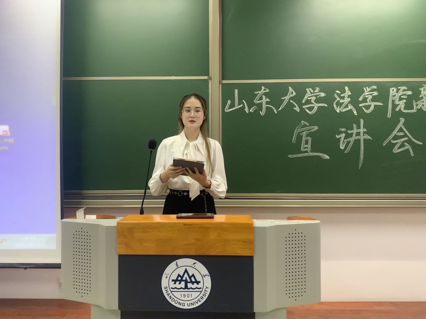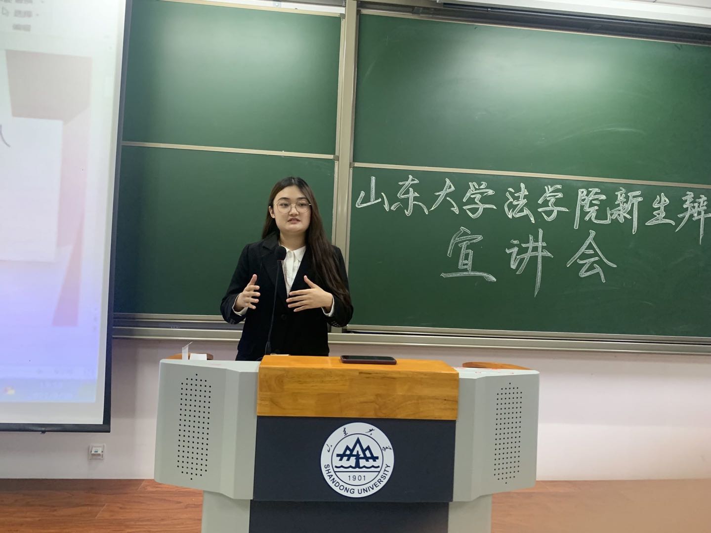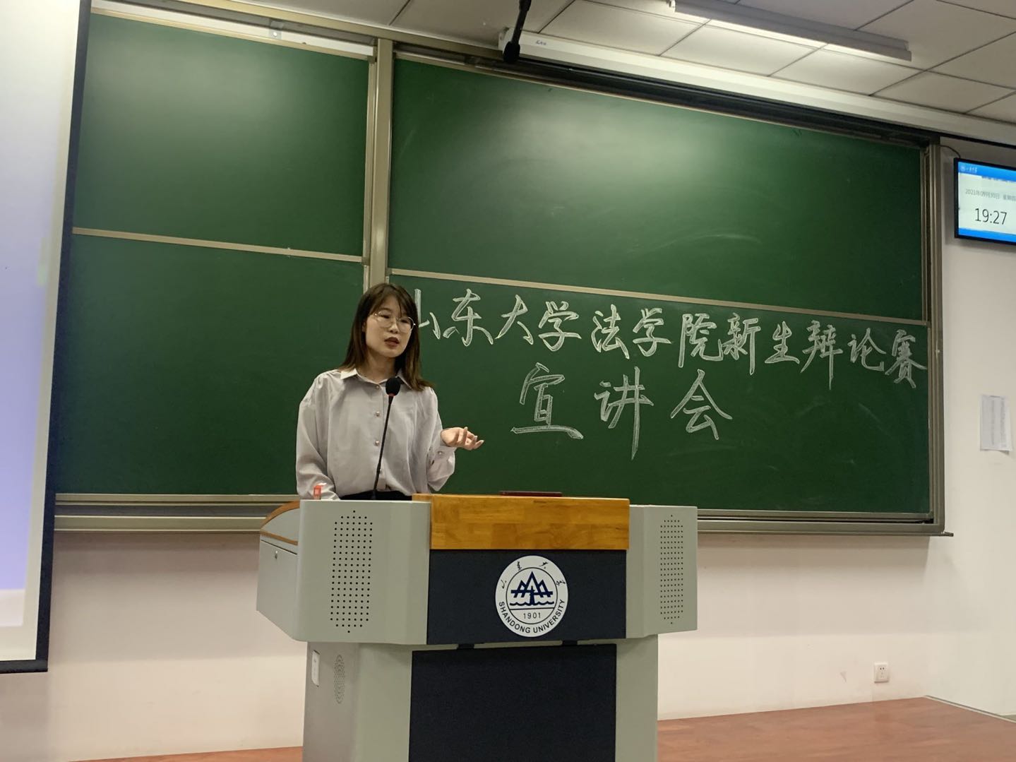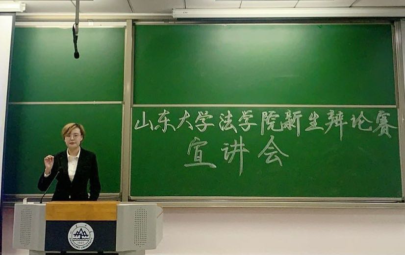 最后一位上台的是taptap点点体育辩论队队长,2019年taptap点点体育新生杯辩论赛冠军暨最佳辩手、2019-2020年华语辩论世界杯青岛赛区冠军、双蝶杯辩论赛(96队)八强选手卢柯杉同学。她为同学们介绍了新生赛的比赛流程、进队事项以及校队总体情况,使同学们对怎样加入辩论队有了更加深入的了解。她以华语辩论世界杯八强、最佳辩手张烜铭学长的一辩陈词为例,为同学们详细介绍了一辩陈词的书写方式,使同学们受到了极大的启发。