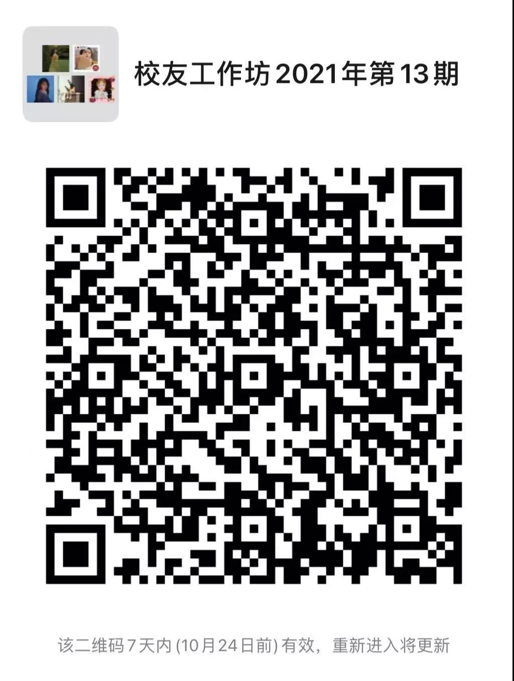有意向参与本次校友工作坊活动的同学,请扫描下方小程序二维码进行报名。报名开始时间为10月19日12:00。因名额有限,请同学们尽快完成报名,最终参与名单将按报名先后顺序进行确定。