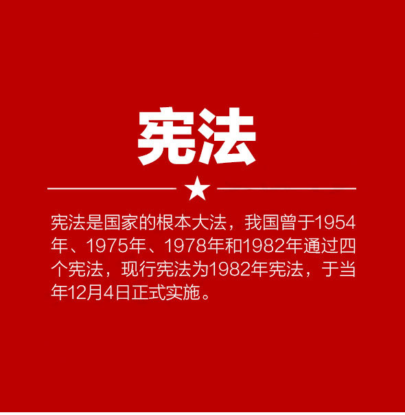 宪法是国家的根本大法,我国曾于1954年、1975年、1978年和1982年通过四个宪法,现行宪法为1982年宪法,于当年12月4日正式实施。