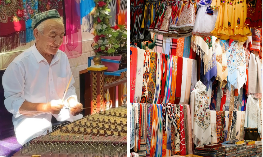 在喀赞其,团队成员的体验更是深入而独特。团队成员亲眼目睹,亲手体验各种传统手工艺的制作过程,如皮革制作、木工和铁艺、制箱子、做皮鞋以及手工打造的马鞍等。这些手工艺,是各民族智慧的结晶,是中华多元文化在物质层面的生动体现。穆老先生,一位维吾尔族的手工艺传承人,他在受访时表示“这些手工艺品,是我们民族智慧的体现。你看这马鞍,每一针一线都承载着我们的历史和文化。我希望更多的人能够了解和传承这些技艺。”在对参观者进行的调查问卷中,团队成员发现超过80%的受访者表示,通过亲身体验传统手工艺,他们对中华多元文化有了更深刻的认识和感受,这些游客来自中华大地的五湖四海,在祖国的最西边,各民族虽然语言不通,但心连在了一起。