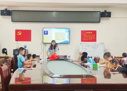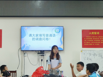 接着,踏梯村的部分中小学生来到踏梯村村民委员会实践中心,由团队成员张杜港以生动有趣的课件和互动游戏,向学生们介绍普通话的起源、重要性以及发音技巧。