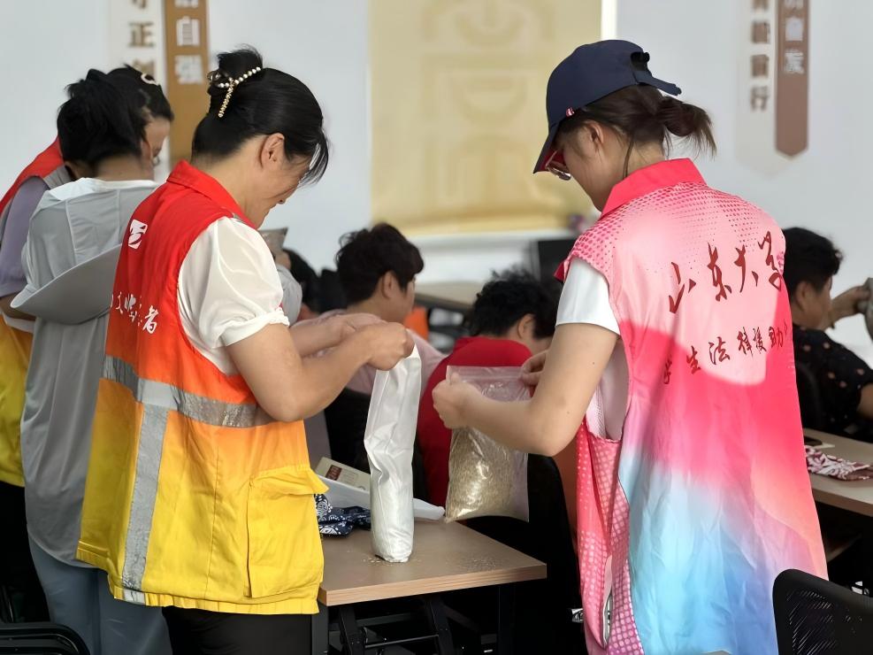 为提升活动趣味性,团队成员特别设置了制作艾草护颈椎头枕的互动手工环节。老年朋友们在志愿者的指导下,兴致勃勃地动手制作属于自己的艾草头枕,制作完成的实用小物件让老人们爱不释手。