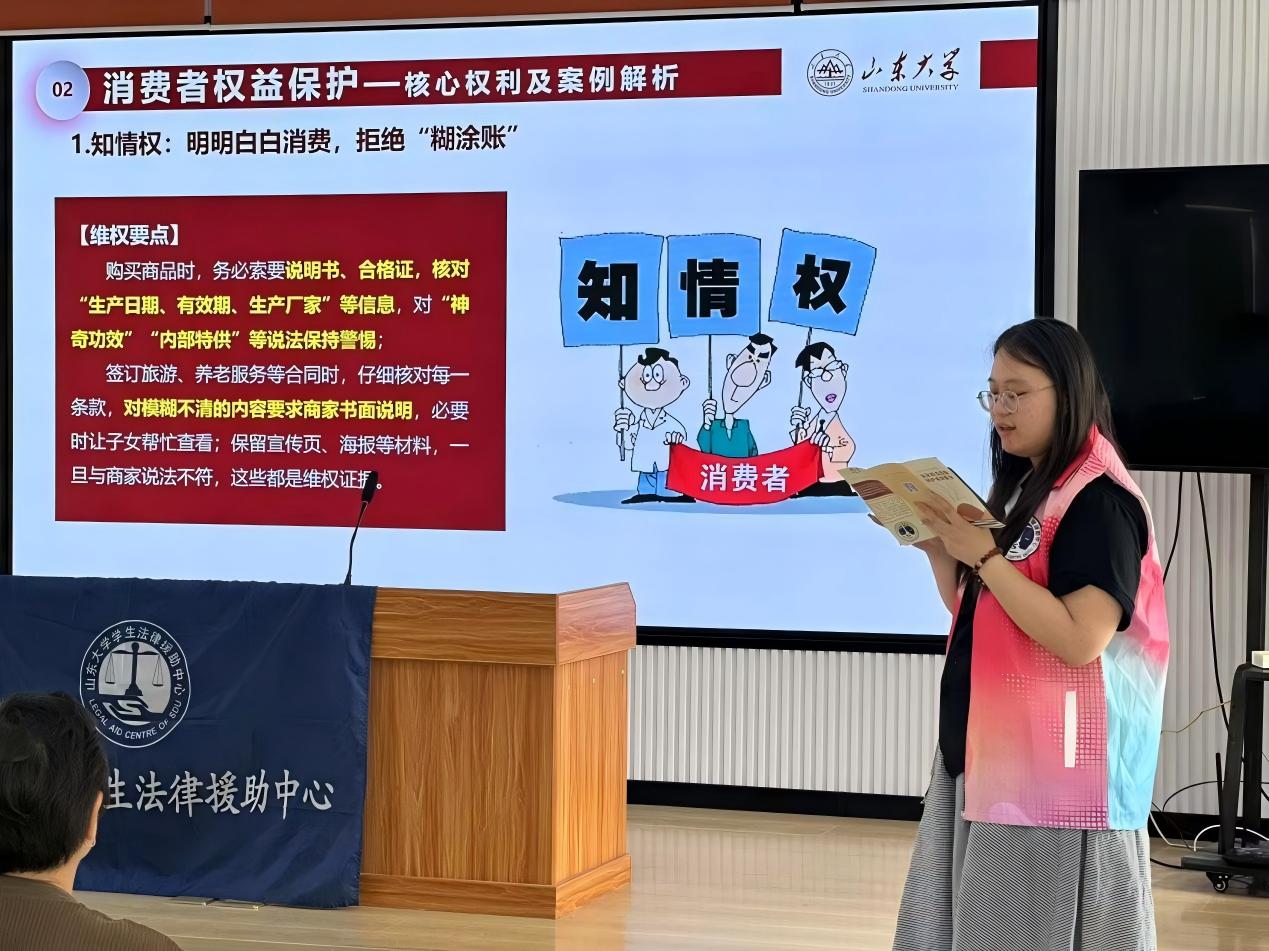 活动伊始,“银龄法盾”团队向在场的老年朋友们分发了精心制作的消费知识宣传手册,为接下来的普法宣讲预热。在随后的法律知识讲座环节,团队成员聚焦老年人日常消费中的焦点问题,结合购买虚假功效保健品、遭遇电信诈骗购买“理财产品”等真实典型案例,深入浅出地解读了《消费者权益保护法》《老年人权益保障法》的核心条款。讲座过程中穿插的互动问答环节气氛热烈,老人们纷纷就自己遇到的消费困惑提问,团队成员耐心细致地一一解答,现场氛围亲切热烈。