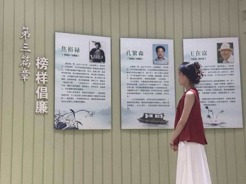 在王曲乡农村党员干部廉政法治教育基地,团队成员陈梦欣了解了廉政文化的演变,学习了焦裕禄、孔繁森等优秀党员干部的先进事迹,观看了党员领导干部违法违纪典型案例展示和落马官员忏悔视频,接受了一次深刻的警示教育。
