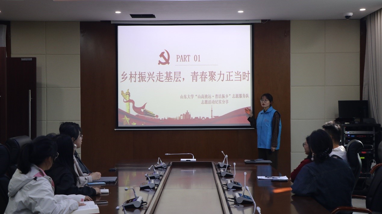 10月16日,团队成员曹婧婧面向taptap点点体育部分本科生、研究生分享了志愿服务活动的心得体会。曹婧婧以“推进法治乡村建设助力乡村振兴——高密市松兴屯村法治乡村创建的探索与实践”为主题展开宣讲,结合志愿服务团队在“潍坊市民主法治示范村、高密市新农村建设先进村”——松兴屯村的调研经历,分享了松兴屯村在基层治理中的民主化和法治化实践经验,并以“加强法律服务,发挥司法惠民作用”为出发点重点谈论了如何完善法治乡村建设中公共法律服务体系。