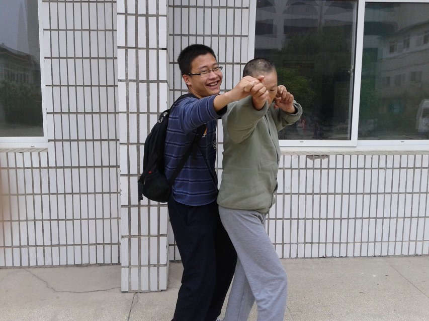 救助站还居住着一些无法记得家庭住址而滞留在救助站的妇女和儿童,他们中有不少人在精神上存在着一些障碍。同学们打扫宿舍的卫生,同他们一起游戏,带他们下楼晒太阳,尽自己的所能努力给他们带来一丝快乐和慰籍。在与他们交流的过程中,同学们也有许多感触。一名患有唐氏综合症的小男孩在做游戏的过程中突然哭着抱住毕经天同学,口中含糊不清地喊着“爸爸”“爷爷”,让同学们心酸不已。刘晓勇同学在与一位滞留救助站的阿姨聊天时,想方设法让阿姨回忆起了家里的一些情况,于是兴冲冲地跑去向工作人员汇报。“你说的这些情况我们之前也有所了解,我根据这些信息和五六个可能的村子联系过,还去实地走访过,但是都没有查到她的住址。”面对工作人员无奈的回答,刘晓勇也感到了一丝失落。但即使难度很大,同学们也依然努力与滞留人员沟通。在王庚同学和杨静同学的努力下,一位阿姨想起了关于自己家乡服饰的一些信息。同学们将其整理后向救助站的工作人员进行了汇报。