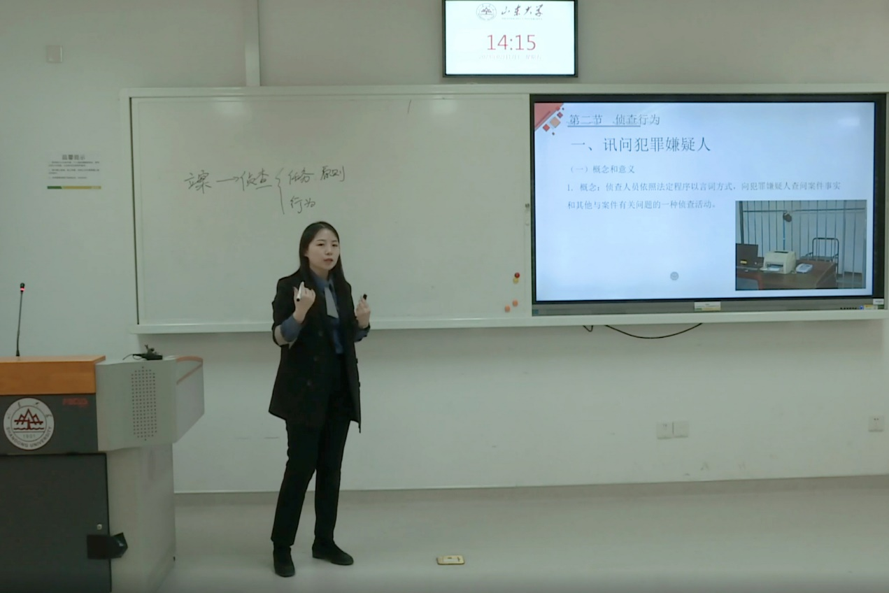 段君尚在决赛中抽到了“侦查行为”教学节段,以热门影视作品中的有关情节为切入点,激发学生对刑事诉讼法的学习兴趣,讲授了讯问、询问、勘验、检查和特殊侦查措施的程序,并结合典型案例探讨了我国刑事诉讼程序的不断完善。在教学反思环节,段君尚围绕程序法思维方式、“4F引导法”分析了教学理念和方法,教学设计获得了评委老师的肯定。