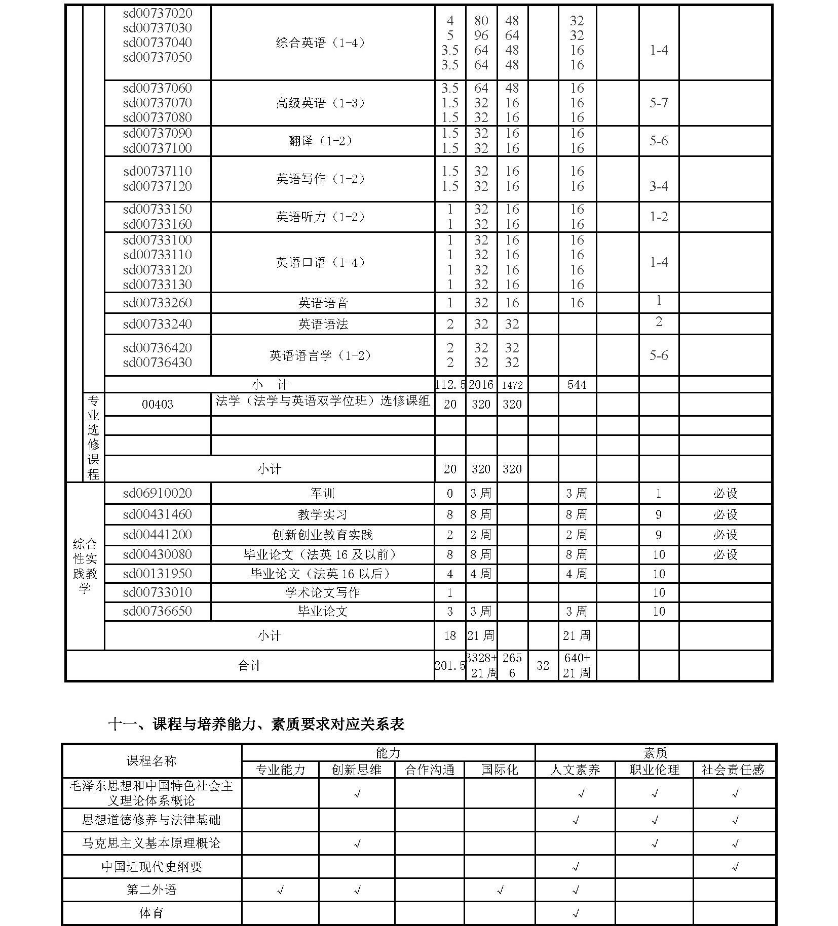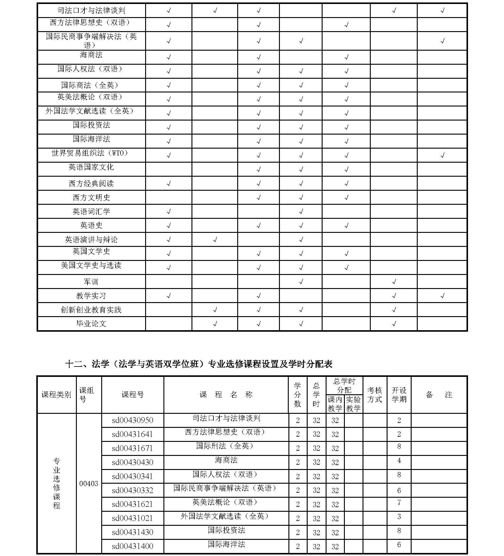 taptap点点体育法学(法学与英语双学位班)专业培养方案(2017)