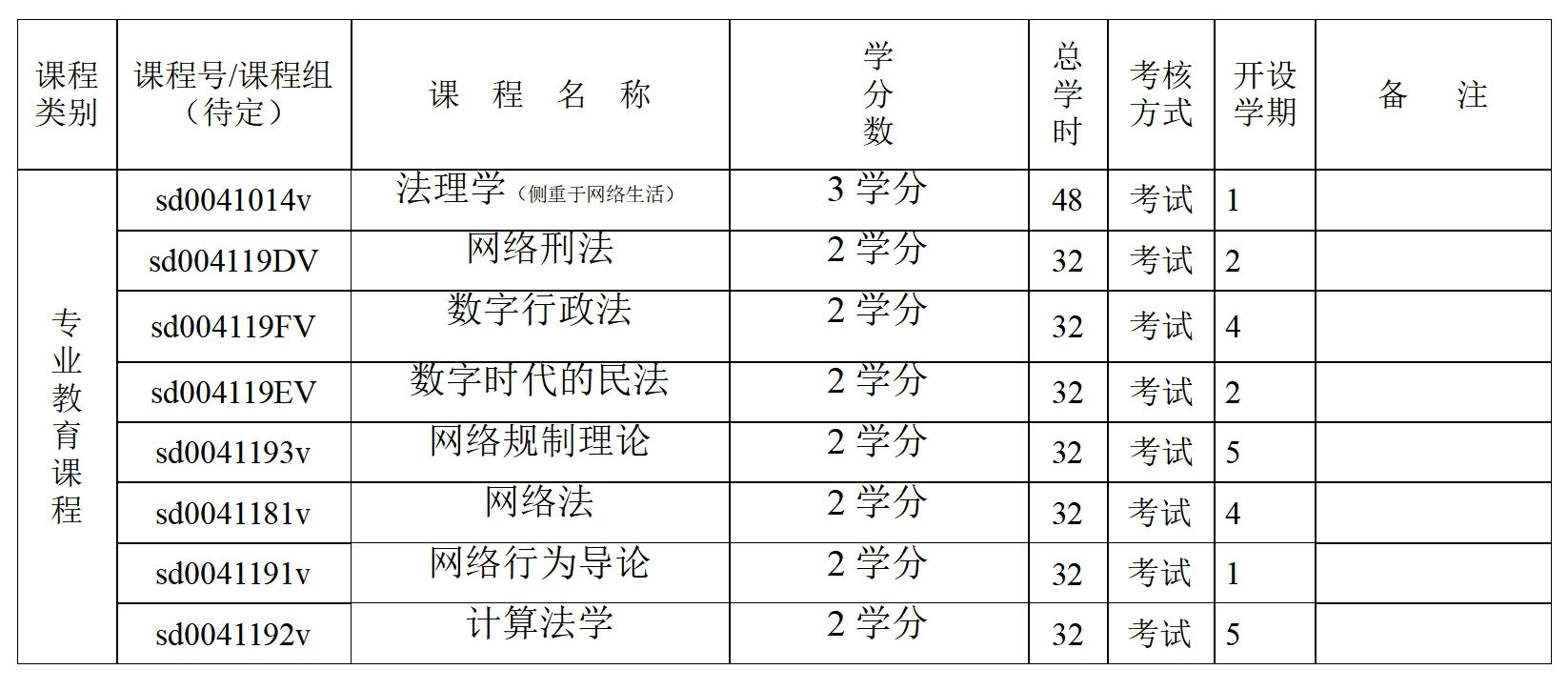 法理学(侧重于网络生活)、网络刑法、数字行政法、数字时代的民法、网络规制理论、网络法、网络空间行为导论、计算法学。