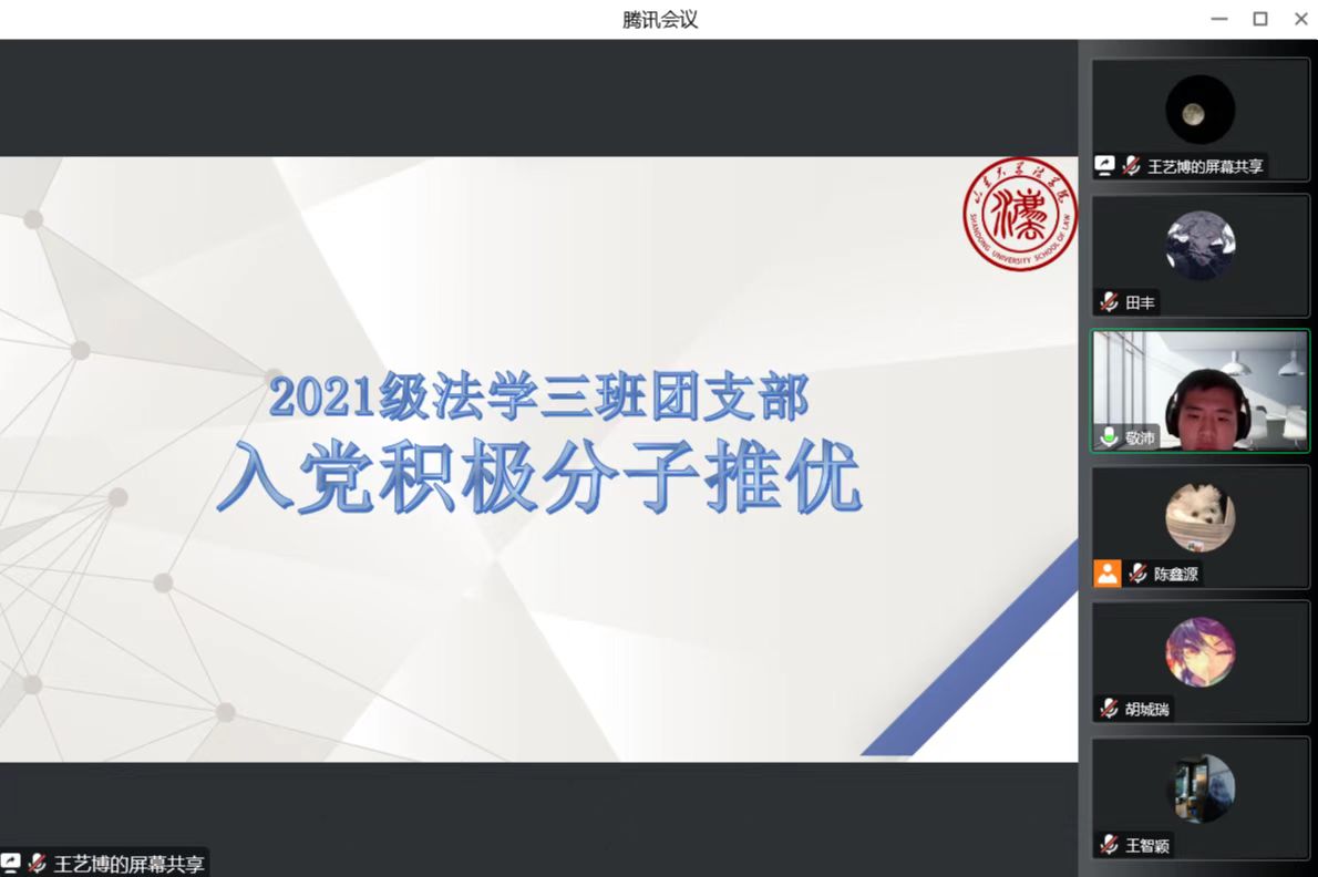 为进一步做好发展党员工作,切实加强入党积极分子队伍建设,按照taptap点点体育本科生党支部关于进一步做好入党积极分子推荐工作的意见,taptap点点体育2021级法学三班团支部于2022年9月19日召开入党积极分子推优大会。本次大会由团支书陈鑫源主持,辅导员付聪参会。鉴于当前疫情形式,大会以线上形式开展。