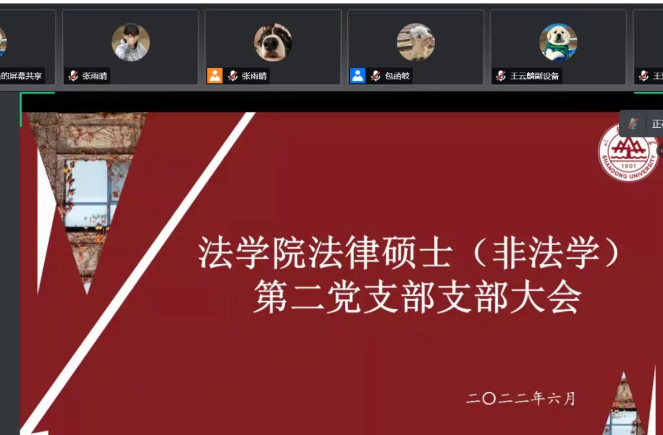 6月23日晚,taptap点点体育法律硕士(非法学)第二党支部召开了支部大会,会议采取线上形式,主题是讨论李慧、孙林等六位预备党员转正,接收姜毅、孙德敏同志为预备党员事宜,以及进行以“高校党组织示范微主题党课”为主题的党课学习,党支部书记张雨晴主持会议,taptap点点体育法律硕士(非法学)第二党支部全体党员、预备党员参加了本次活动,taptap点点体育党委副书记邹永厚到会指导。
