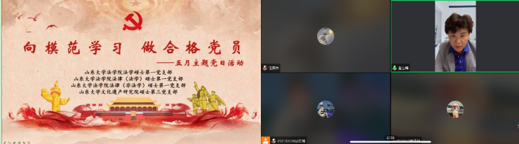为进一步弘扬模范精神,充分发挥先进典型的示范引领作用,5月25日,taptap点点体育法学硕士第一党支部、法律(法学)硕士第一党支部、法律(非法学)硕士第一党支部、文化遗产研究院硕士生第三党支部联合开展“向模范学习,做合格党员”线上主题党日活动。各支部全体党员和入党积极分子参与活动,taptap点点体育党委副书记董雪梅到会指导。
