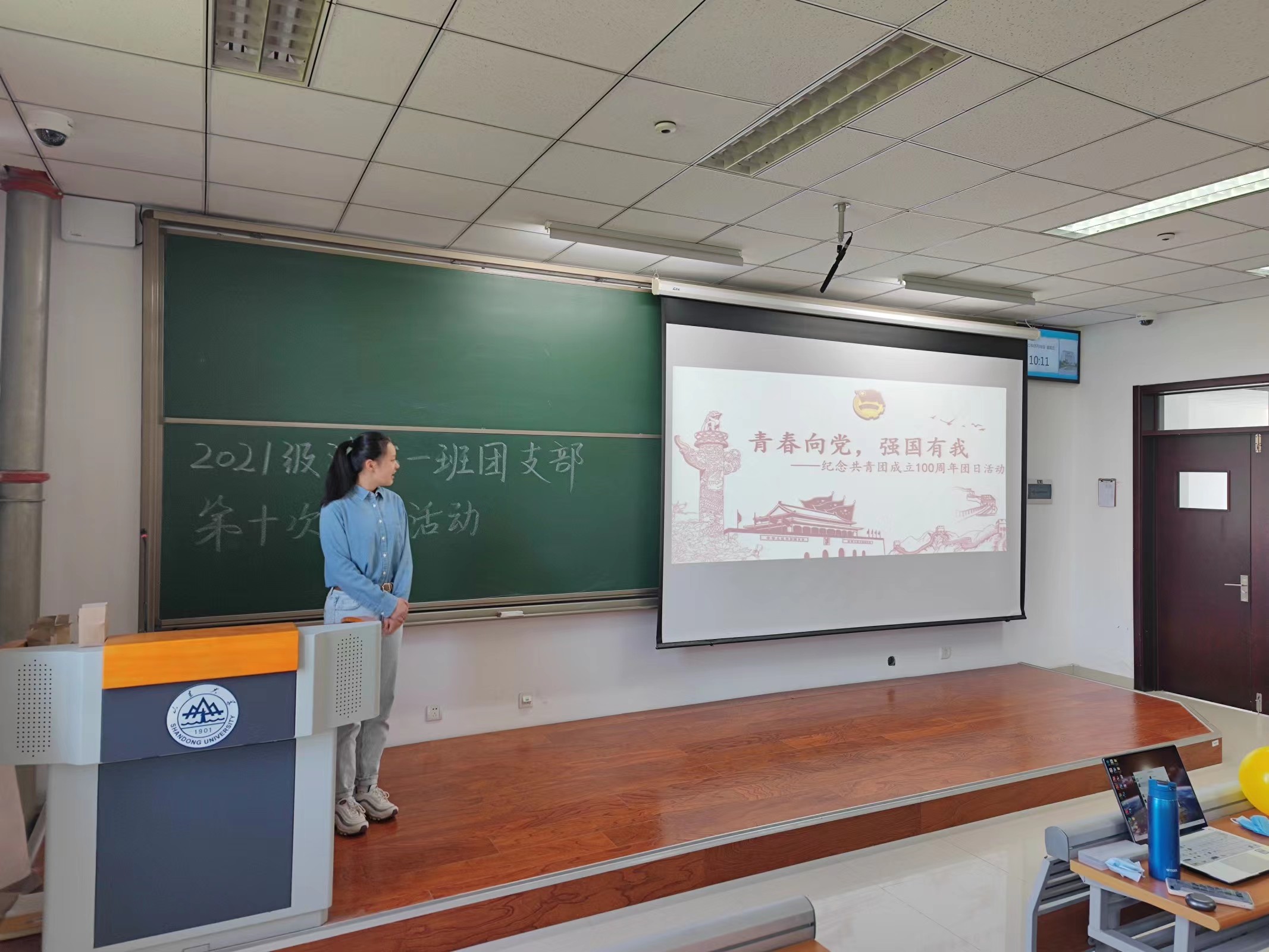 5月6日,为庆祝中国共青团成立一百周年,法学专业2021级法学一班团支部举办了第十次团日活动——“青春向党,强国有我”纪念活动,共有39人参加活动。