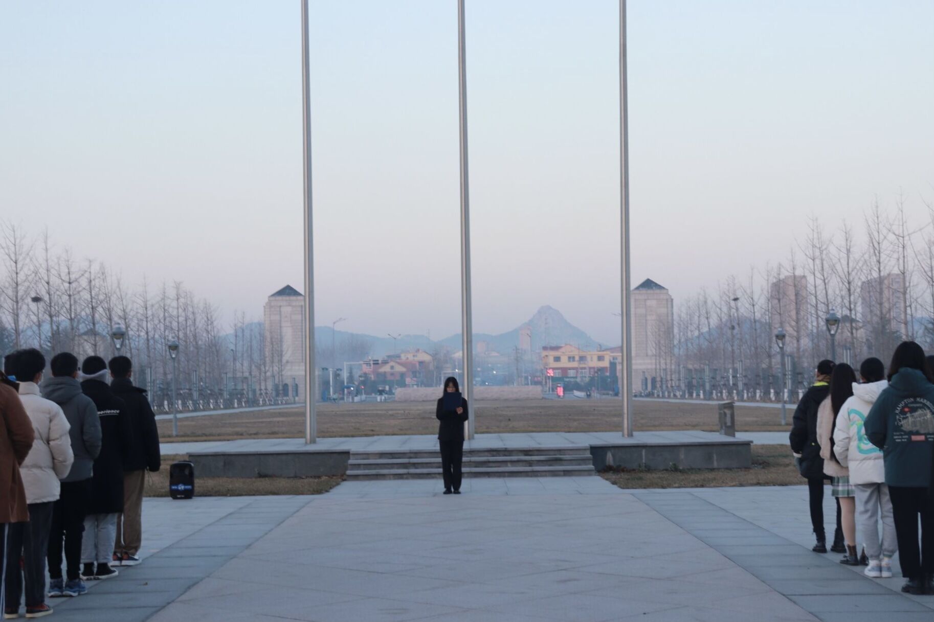 上午七时,升旗仪式正式开始。随着一声令下,国旗护卫队队员昂首挺胸、精神抖擞,迈着整齐有力的步伐走向升旗台。国歌奏响,升旗手振臂一挥,五星红旗冉冉升起。全体人员整齐肃立,高唱国歌,面向鲜红的五星红旗行注目礼。在鲜艳的红旗下,团员代表热比哈·杰恩斯同学作了主题为“爱国有我,青年先行”的演讲。她用铿锵有力的话语向大家讲述着青年与国家不可分离的紧密联系,激励着大家为中国的富强,中华民族伟大复兴不懈努力、顽强奋斗。团支书陈鑫源带领大家重温入团誓词。同学们面向国旗、紧握右拳、庄严宣誓,慷慨激昂的声音展现出山大学子积极向上的精神风貌。最后,同学们齐唱taptap点点体育校歌,清澈而明亮的歌声回荡在山海之间,为此次升旗仪式画上完美的休止符。