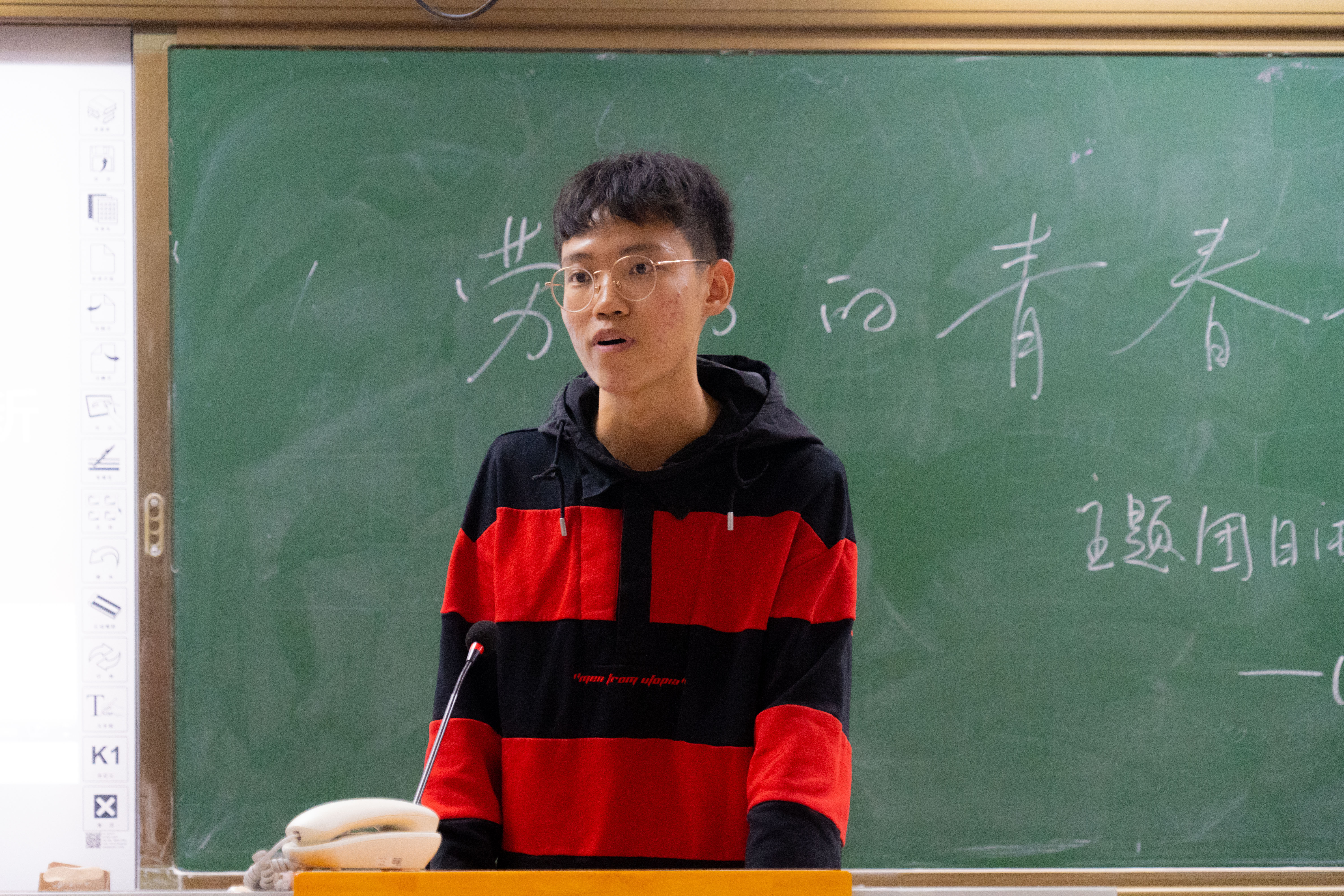 在活动第一阶段,组织委员马如毅对《方案》中的政策进行解读,从制定背景、主要考虑、主要框架、目前困难问题、下一步工作打算等方面对政策进行详细剖析,引导同学们深入了解学校所制定的政策,明确学校对广大同学的要求与期望,并引导同学们树立劳动观念。